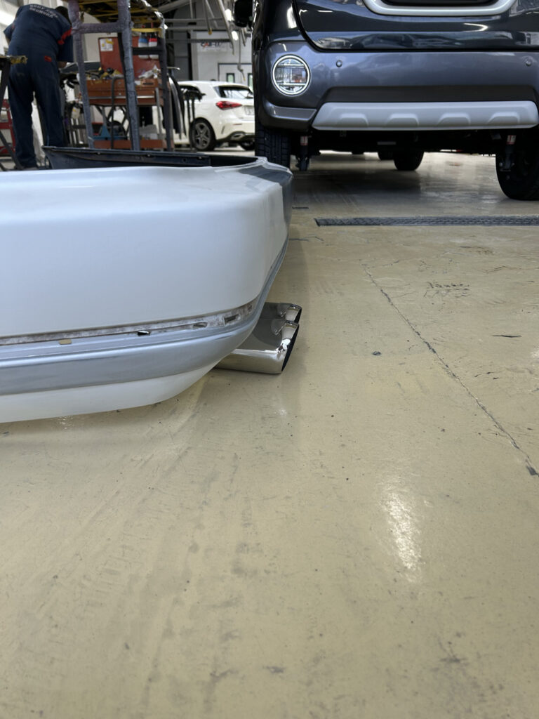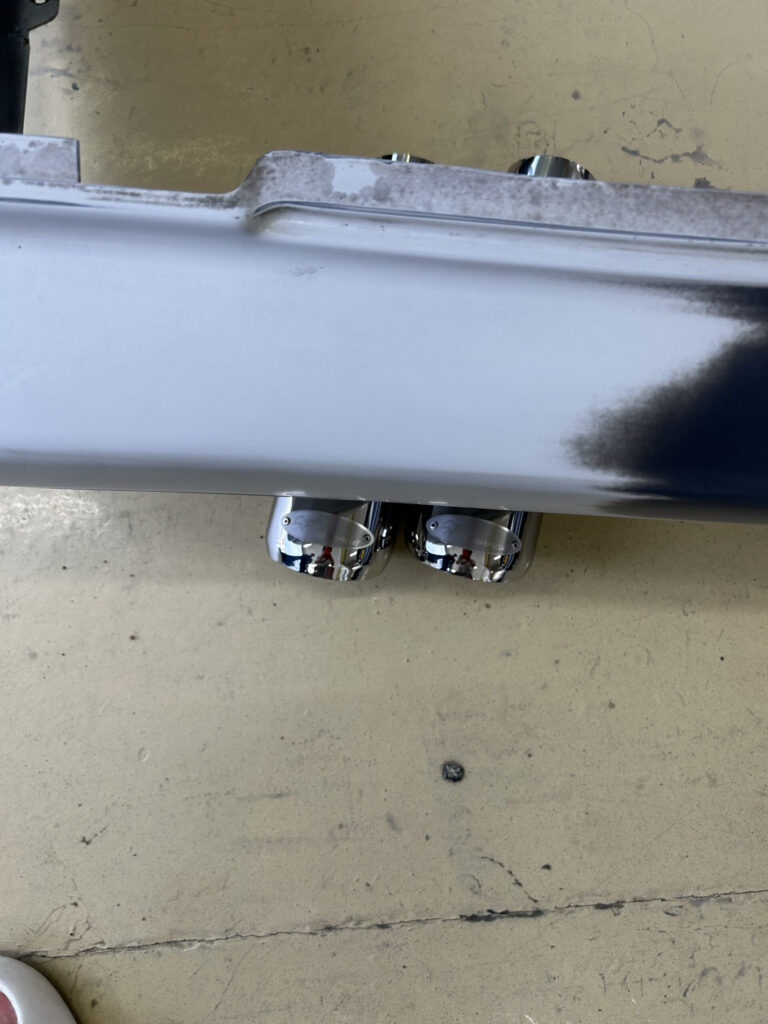 全塗装の進捗確認で板金屋さんに行った際、マフラーの採寸(笑)SPガレージオリジナルのマフラーエンド。