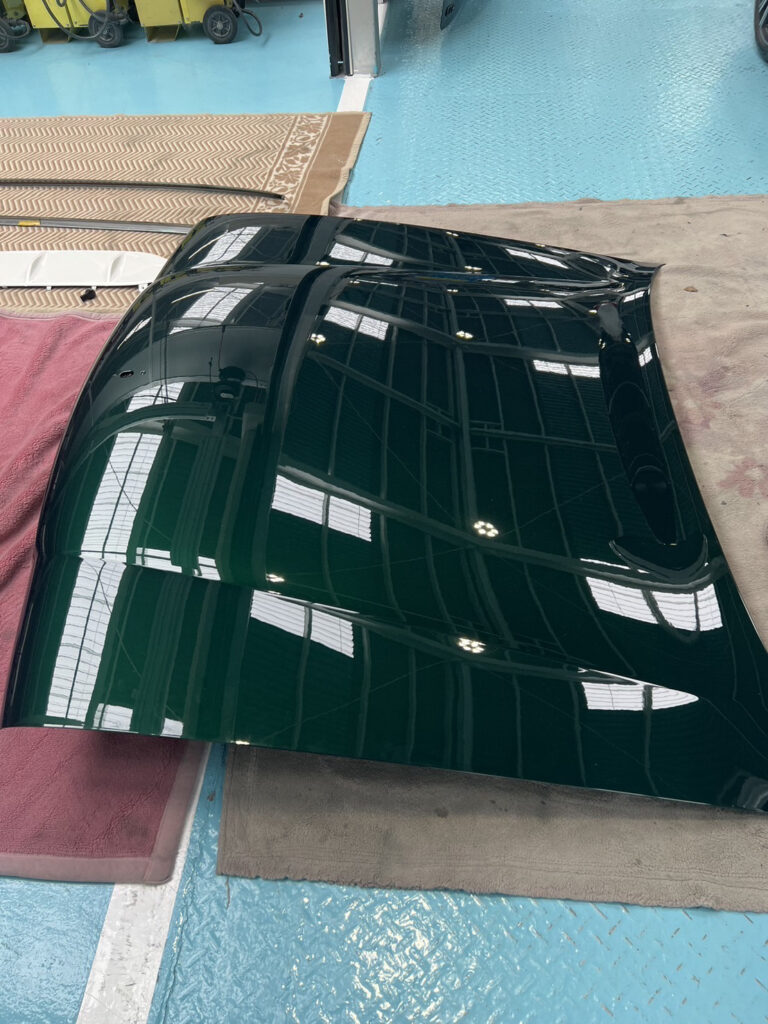 ボンネット裏もしっかり塗装。ウォッシャーノズルもスムージングが裏側からも見えへんように丁寧に処理されてる。